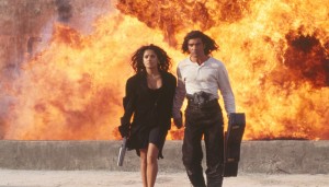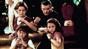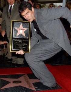 молодым режиссером Робертом Рдригесом, для которого он стал одним из ведущих актеров. Их совместные картины имели огромный успех в прокате, и заведомо предрекали успех. Так, уде в 1995-м году на большие экраны вышли сразу две их совместные работы: черная кинокомедия «Четыре комнаты», и криминальный боевик «Отчаянный», который также стал культовым. Помимо этого, актер снялся в эротическом триллере «Незнакомец», остросюжетном боевике «Наемные убийцы», комедийной мелодраме «Двое – это слишком», а также биографическом мюзикле «Эвита», где его очаровательной партнершей была сама Мадонна. К концу 90-х годов испанец уже носил титул главного мачо и секс-символа