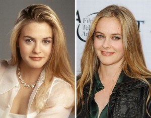 Успешная кинокарьера этой белокурой красавицы стартовала в подростковом возрасте, после того, как Алисия исполнила небольшую роль в молодежном драматическом телесериале под названием «Чудесные годы». Ныне на её счету несколько десятков ярких и запоминающихся ролей, и десятки престижных наград и номинаций. Однако, преданные поклонники знаменитости уже давно заметили, что год от года их любимица ни капли не меняется, ну, по крайней мере, внешне. Она растет в карьерном, профессиональном и духовном плане, обзавелась семьей, родила ребенка, но, сохранила при этом юную, не тронутую годами внешность. Примечательно, что Сильверстоун давно известна всем, как очень строгая последовательница вегетарианской диеты. Возможно, действительно, секрет молодости таится в вегетарианстве, ведь, присмотритесь внимательно: на первой фотографии актрисе чуть за 20, но выглядит она как школьница, а на второй знаменитость разменяла уже пятый десяток, а выглядит на 25 лет максимум.