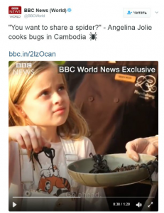 Джоли блеснула своим мастерством в процессе разделывания и подготовки «тушек» тарантулов к обжариванию. Она показала, где находятся ядовитые зубы и железы, которые нужно удалить. Звезда отметила, что поедание крупных насекомых для местного населения является не только данью традициям, но и способом выживания, к примеру во время войн и голода. Актриса добавила, что сама она начинала со сверчков, которые, по её мнению, отлично сочетаются с пивом, а уже потом перешла на скорпионов и тарантулов. Подготовленных к обжарке пауков, актриса вместе с дочерьми, выложила на сковороде, и немного обжарила до корочки. Анджелина первой преступила к трапезе и предложила детям также попробовать это необычное блюдо. Шайло первой осмелилась это сделать, а потом к ней присоединились Вивьен и Нокс. Детям пришлось по вкусу такое блюдо, а Шайло даже сравнила вкус паука с чипсами. Джоли подчеркнула, что насекомые, действительно, не так уж плохи на вкус, но из всех, только скорпионы плохо жуются и имеют специфический привкус, который не всем приходится по душе.