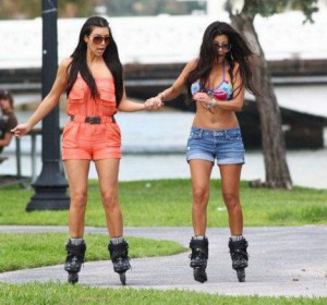 Любят устраивать семейные заезды на роликах и родные светской львицы Ким Кардашьян, правда речь идет не о супруге и детях, а о её многочисленных сестрах, которые также верят, что подобные забеги на роликовых коньках помогают сохранить отличную фигуру.