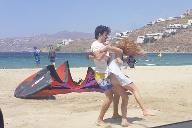 Дело было на многолюдном пляже, на глазах у десятков отдыхающих, изумленных таким поведением молодых людей. Очевидцы утверждают, что актриса, в пляжном платье без белья, выскочила из машины своего бойфренда с телефоном в руках. Судя по крикам и истерике, девушка обнаружила там нечто, что её шокировало. Следом за ней погнался разъяренный Егор, он настиг её на пляже, после чего между ними завязалась драка. Молодой мужчина пытался отнять у неё свой гаджет, нещадно трепая хрупкую девушку за руки и волосы.